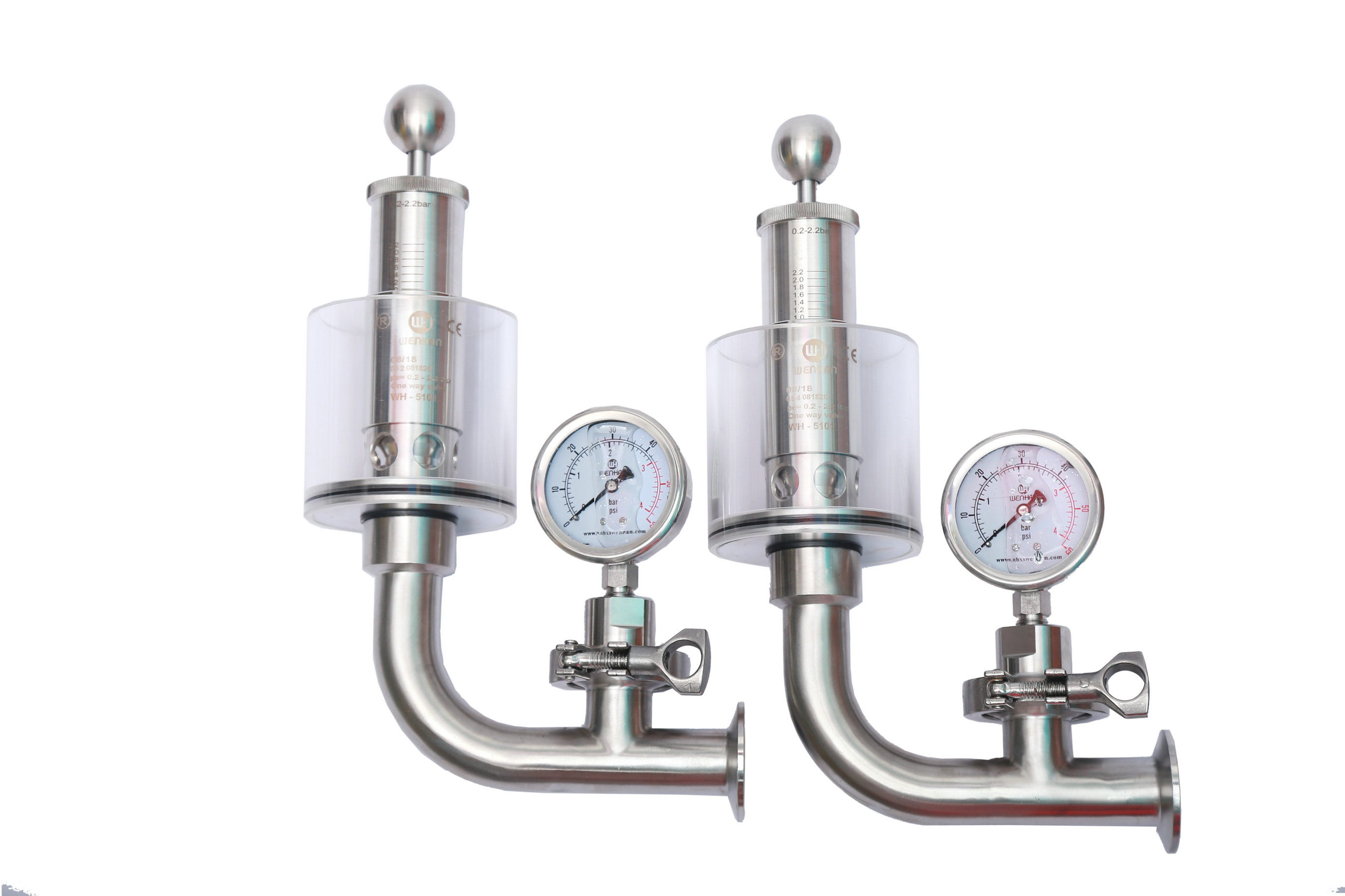 調節單向排氣閥保護容器壓力過高防爆作用,當壓力高于設定壓力(標準1BAR)時可以排氣,反之關閉,調節桿標上壓力刻度,所需壓力按刻度上調整,該閥門使用方便,刻度準確,玻璃罩加水能看到發酵效果,減少染菌。同時也可以滿足于各種生產工藝需求,適用于各種食品加工,啤酒,飲料以及制藥等各種工業領域。