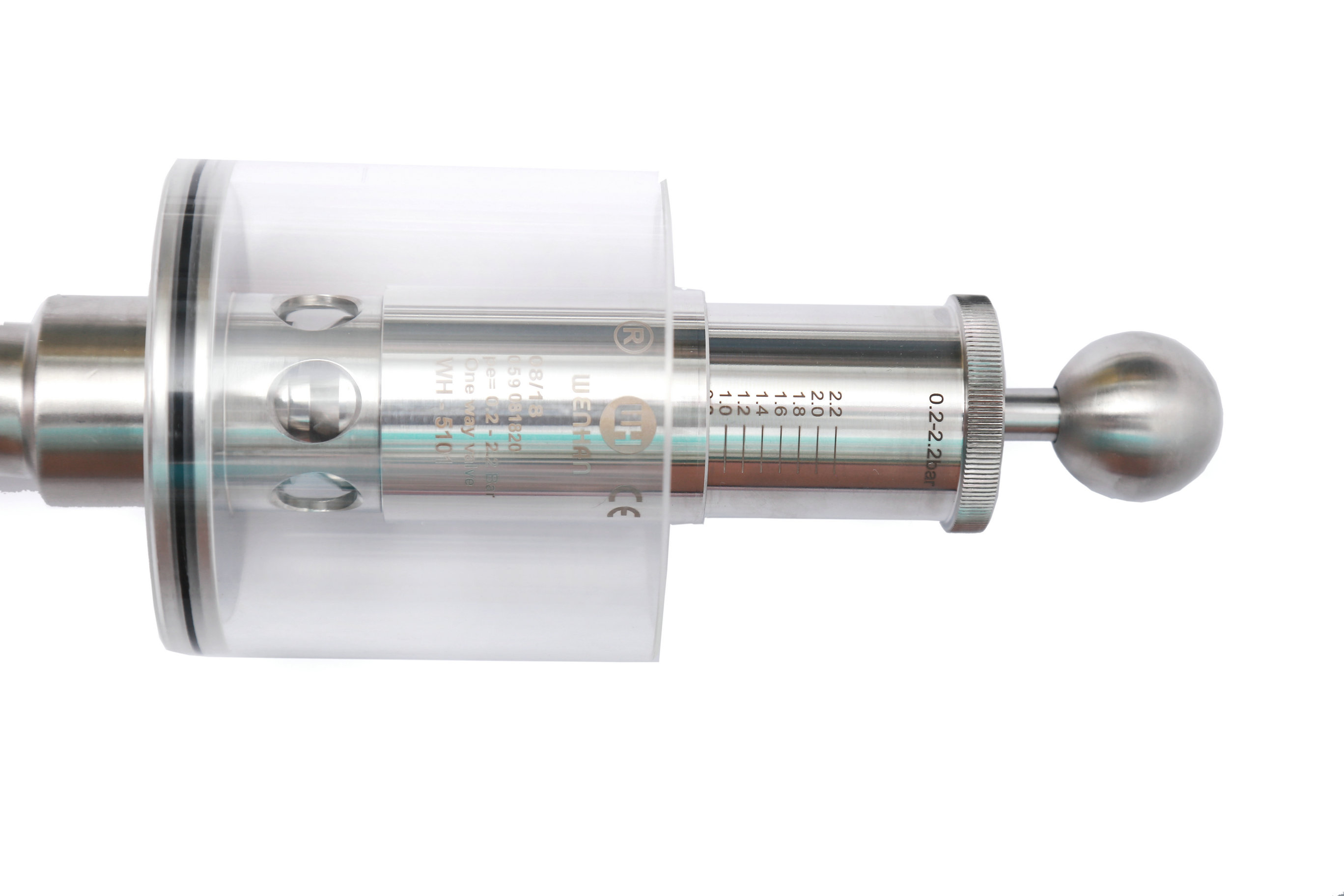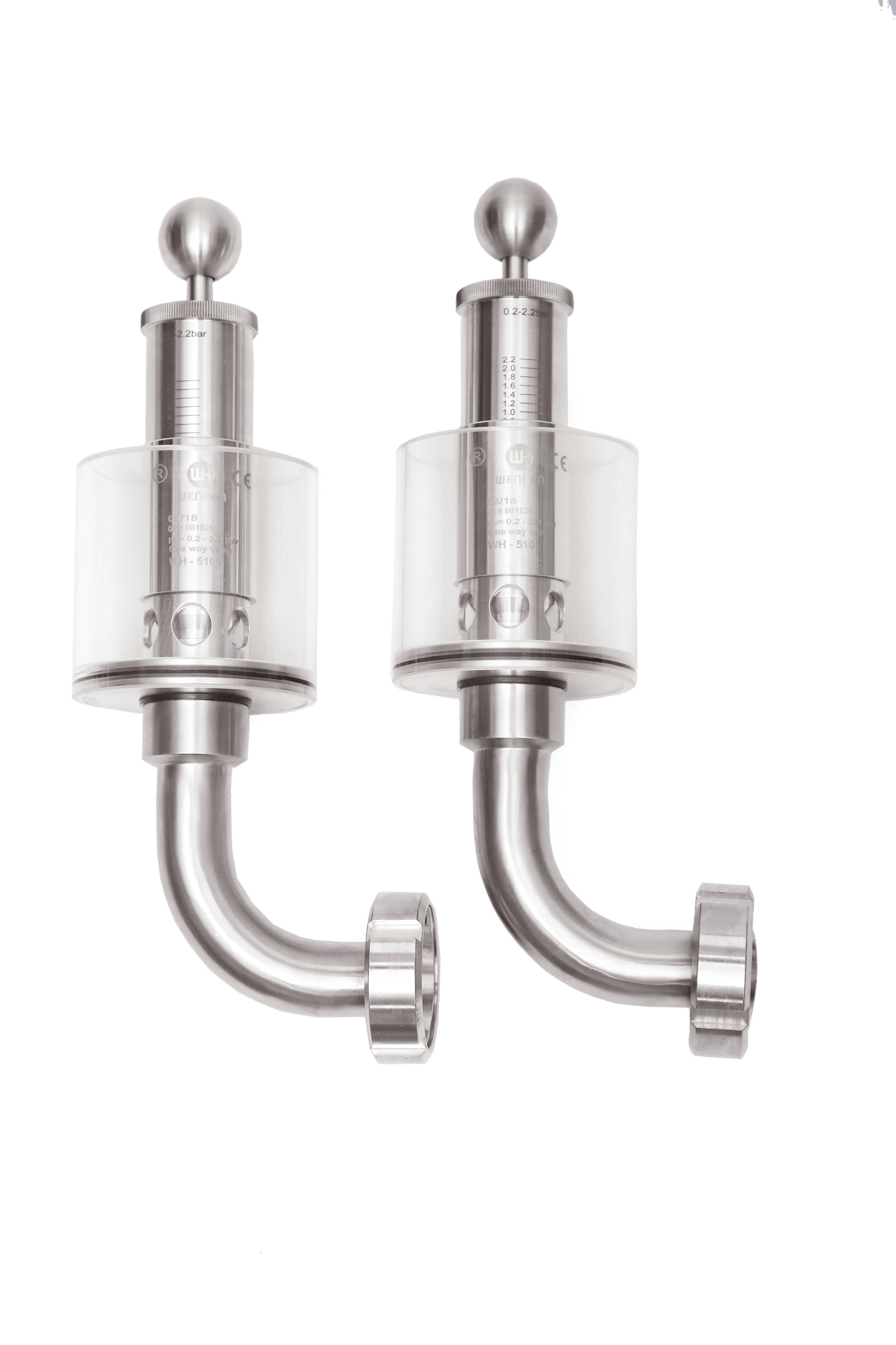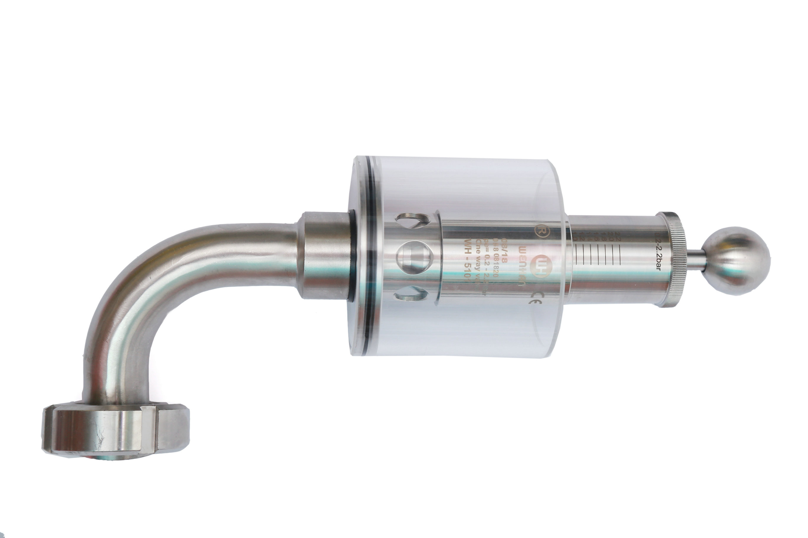 該閥門應用于壓力容器式管路系統上 調節單向排氣閥保護容器壓力過高防爆作用,當壓力高于設定壓力(標準1BAR)時可以排氣,反之關閉,調節桿標上壓力刻度,所需壓力按刻度上調整,該閥門使用方便,刻度準確,玻璃罩加水能看到發酵效果,減少染菌。同時也可以滿足于各種生產工藝需求,適用于各種食品加工,啤酒,飲料以及制藥等各種工業領域。