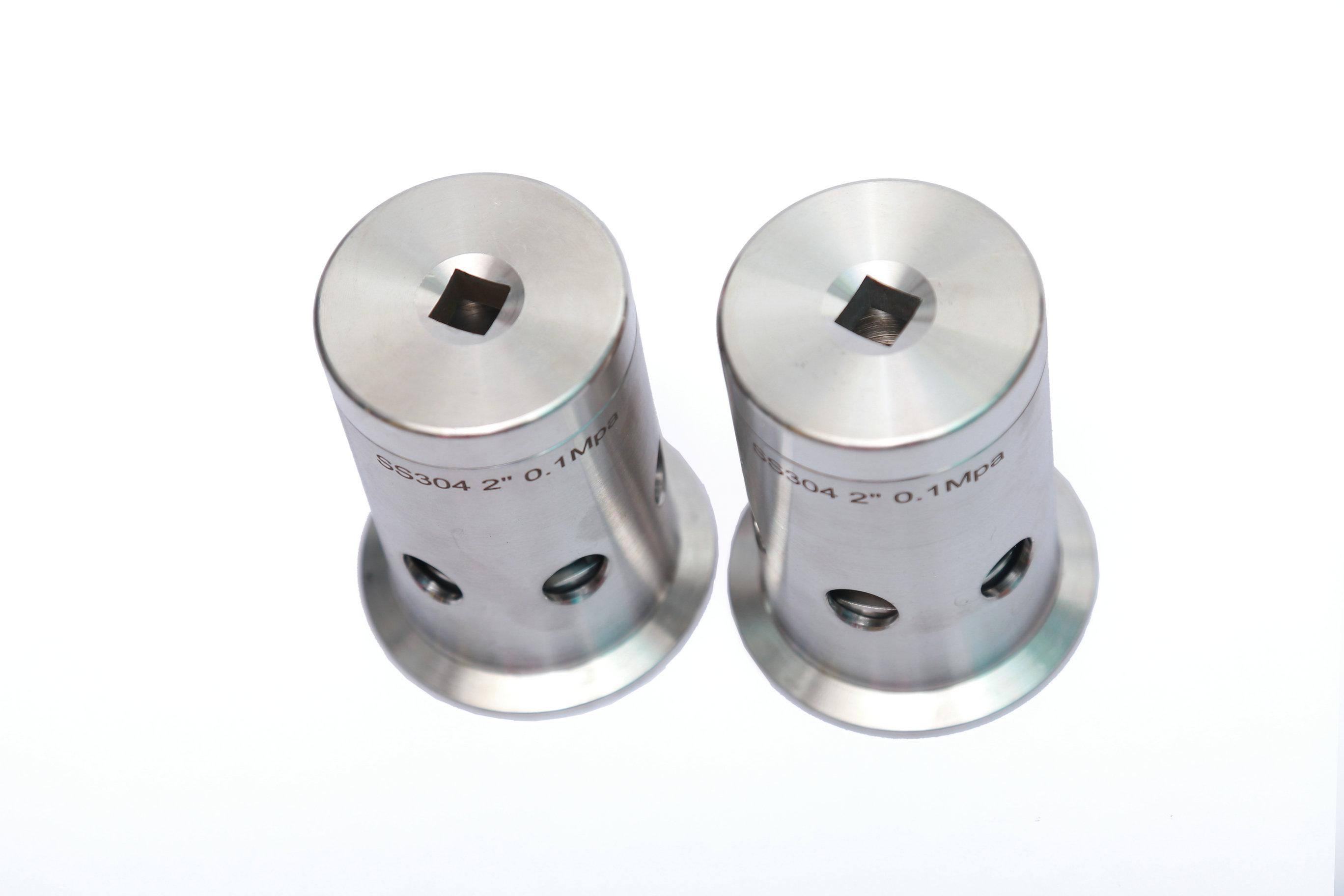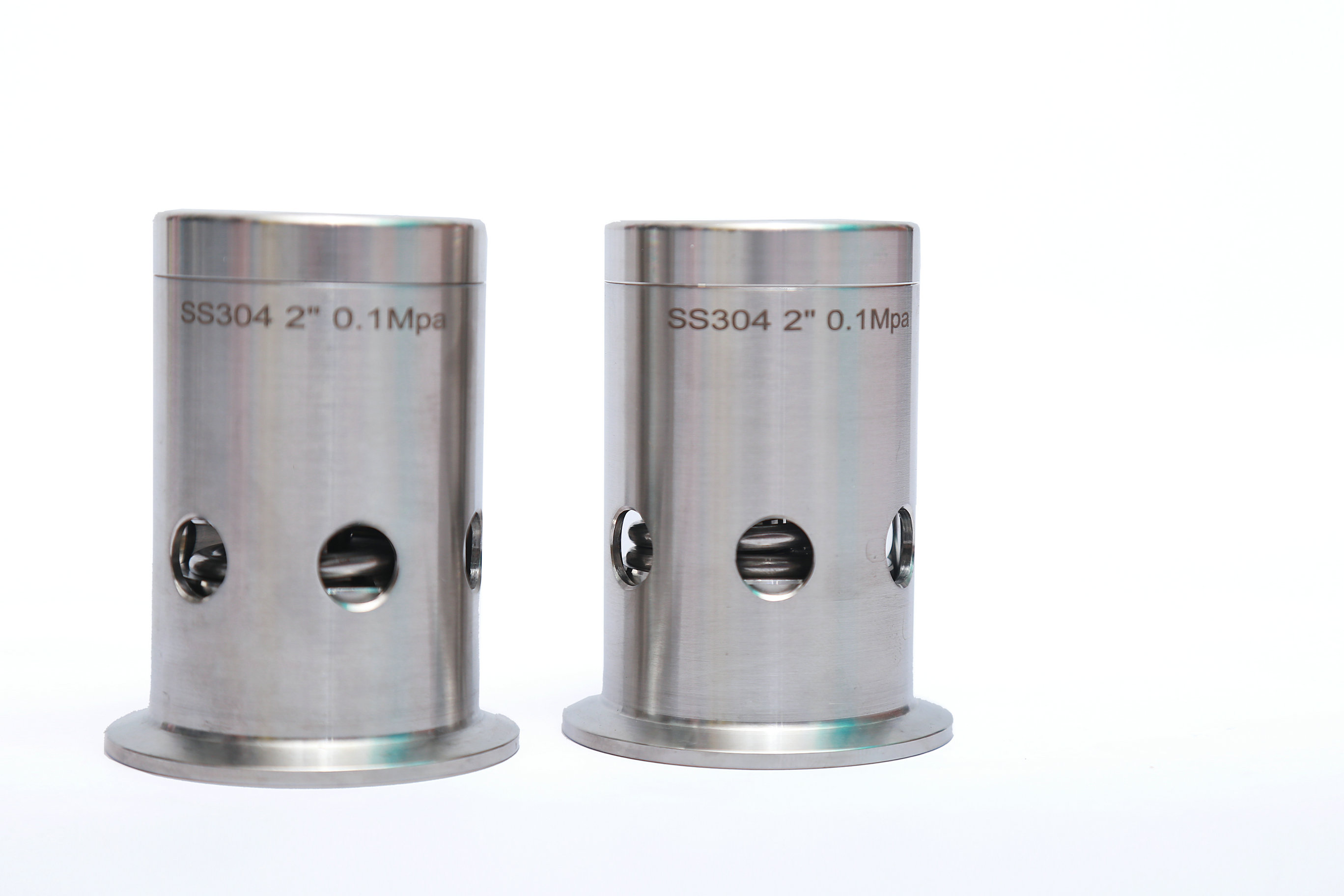 Introduction to functions and features The valve is used in pressure vessel piping systems Breathing valve has two functions, when the pressure is higher than the set pressure (standard 1 BAR) can exhaust, whereas closed, while vacuum piping system (standard 0.2 BAR) when the valve opens automatically, to ensure the safety of the equipment and related instrumentation protection, at the same time can also meet the demand in all kinds of production process, the valve in stainless steel material, health design, content with all sorts of food processing, beer, beverage and pharmaceutical and other industries.