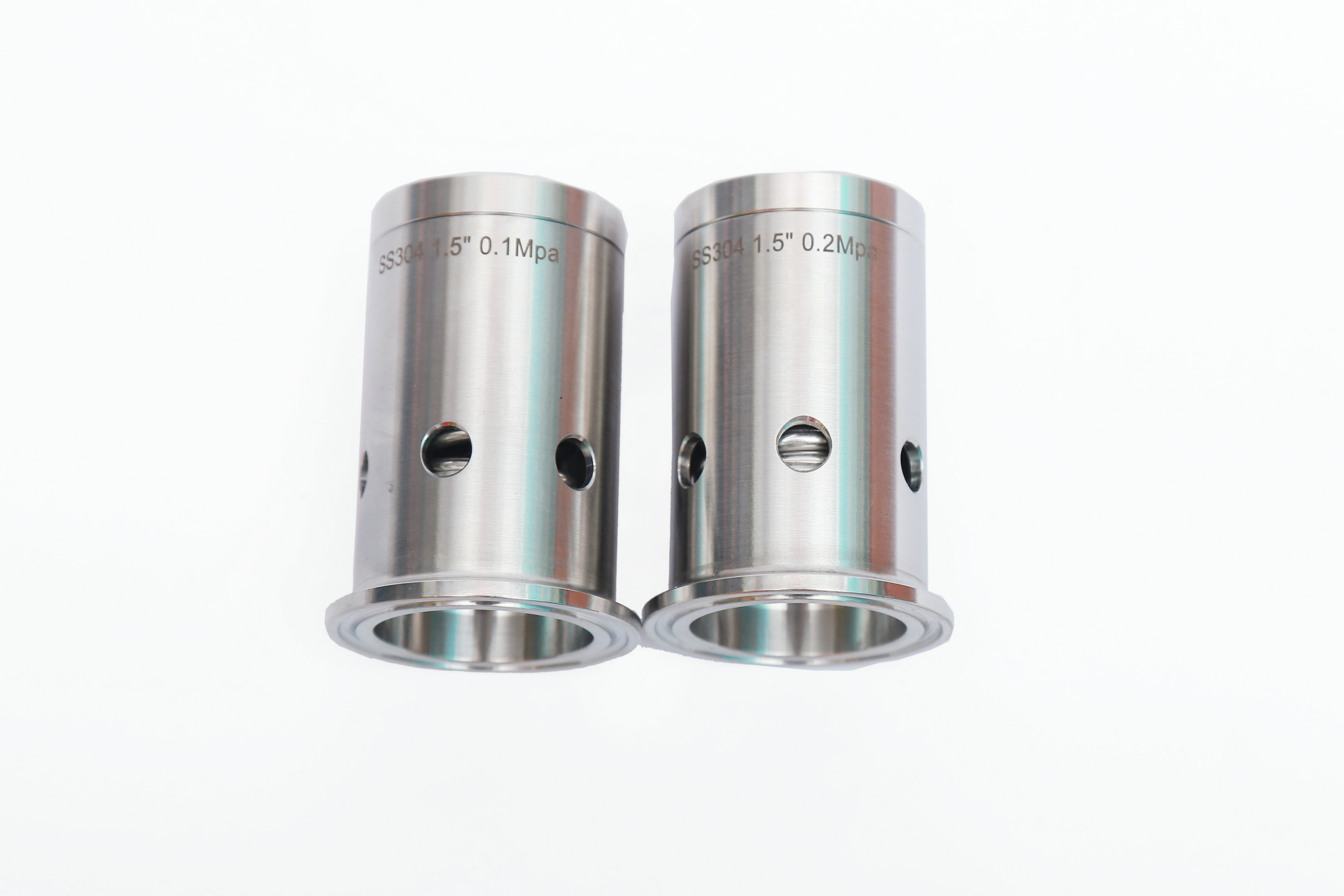 呼吸閥具備兩種功能,當壓力高于設定壓力(標準1BAR)時可以排氣,反之關閉,當管路系統中產生真空(標準-0.2BAR)時閥門自動打開,保證設備和相關儀表的保護作用,同時也可以滿足于各種生產工藝需求,該閥門不銹鋼材質,衛生設計,滿足于各種食品加工,啤酒,飲料以及制藥等各種工業領域。