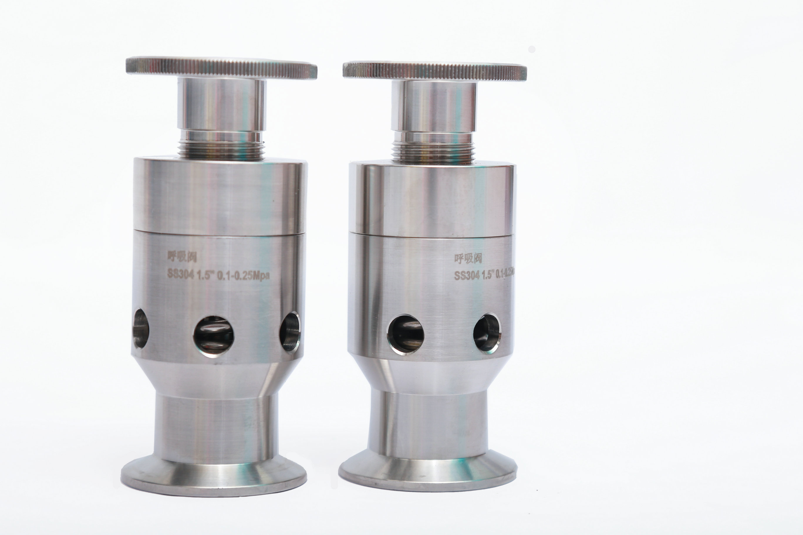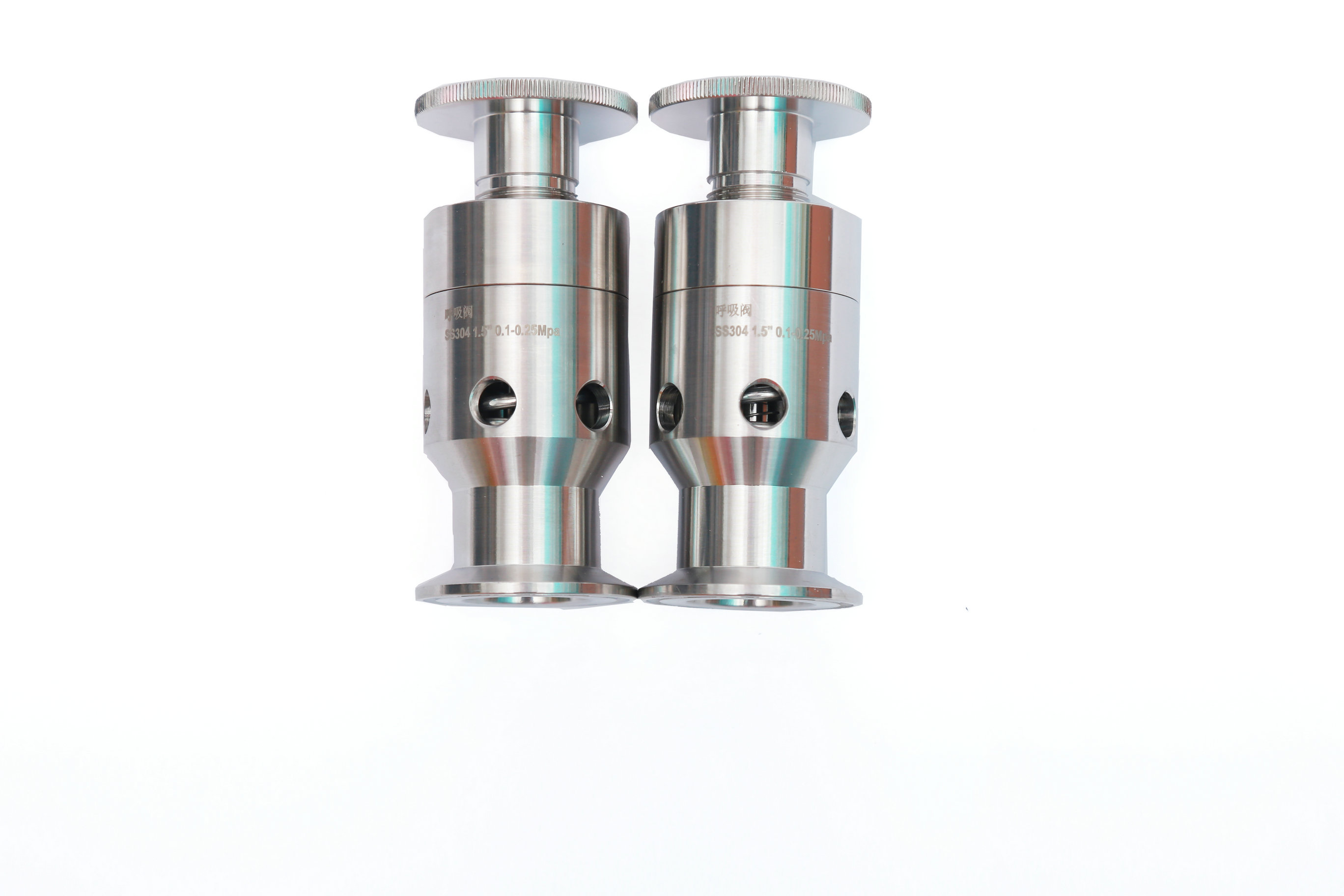 蒸汽閥具備單向功能,當壓力高于設(shè)定壓力(標準1BAR)時可以排氣,反之關(guān)閉,由彈簧來控制壓力增壓,各種壓力可以定制,達到你想要的壓力,三夾鉗鏈接管道或容器。出氣口90°型彎頭可以套軟管接頭 進行排放氣體或者排放鏈接到其它地方排氣,緊湊型設(shè)計,方便拆裝,設(shè)計出氣彎頭 是防止蒸汽水噴到工作人員。,當管路系統(tǒng)中產(chǎn)生真空(標準-0.2BAR)時閥門自動打開,保證設(shè)備和相關(guān)儀表的保護作用,同時也可以滿足于各種生產(chǎn)工藝需求,該閥門不銹鋼材質(zhì),衛(wèi)生設(shè)計,滿足于各種食品加工,啤酒,飲料以及制藥等各種工業(yè)領(lǐng)域。