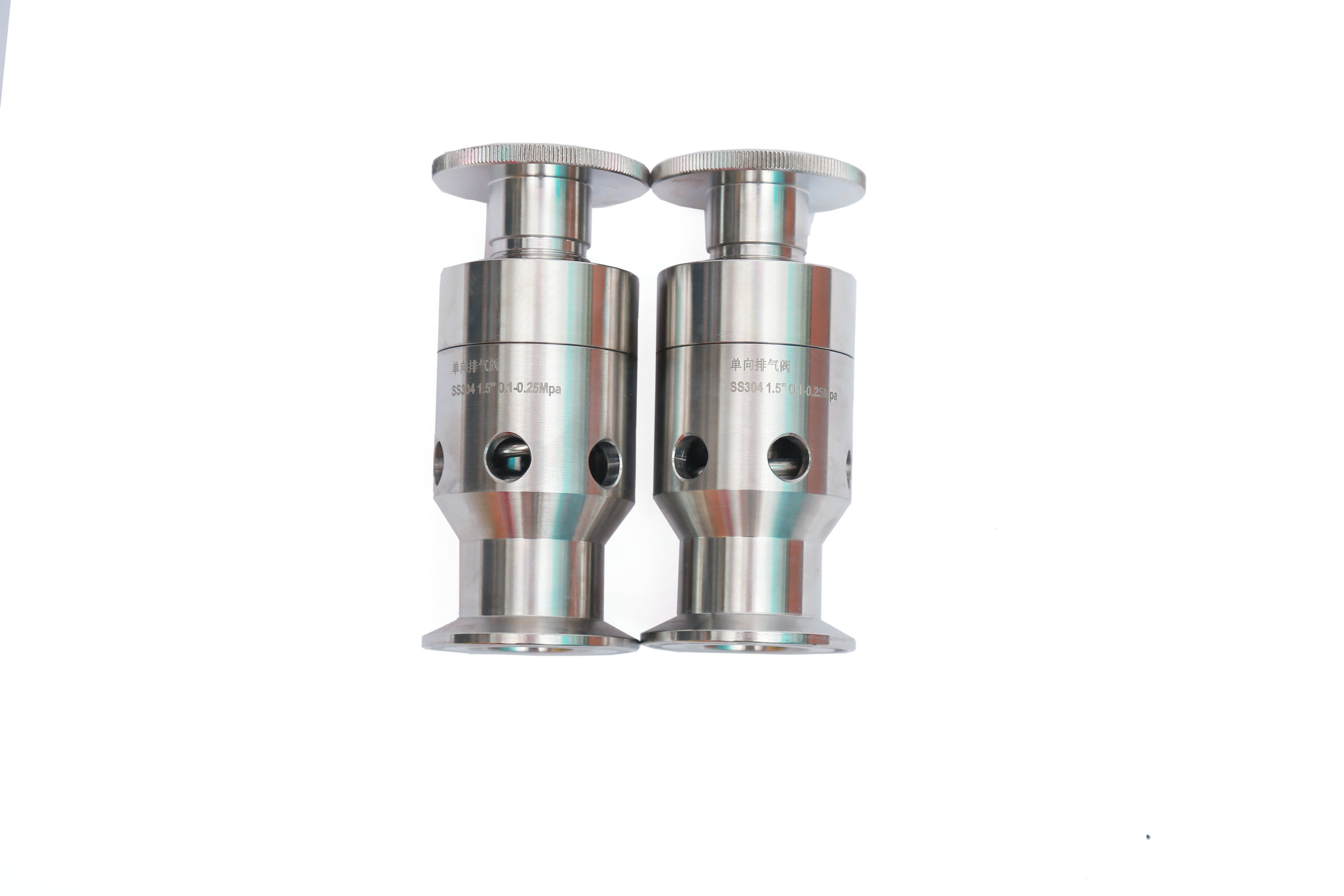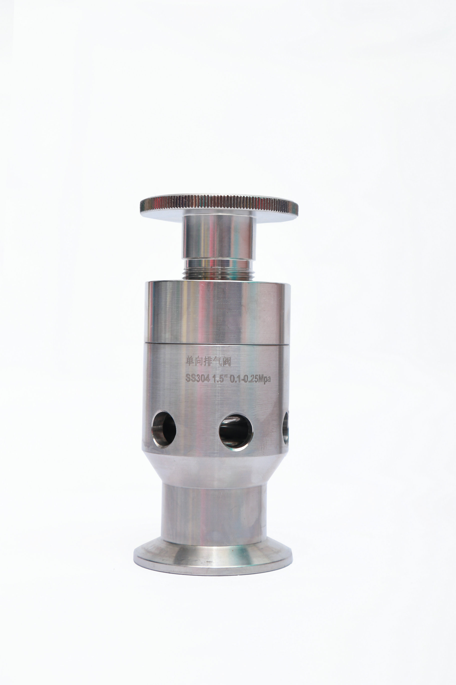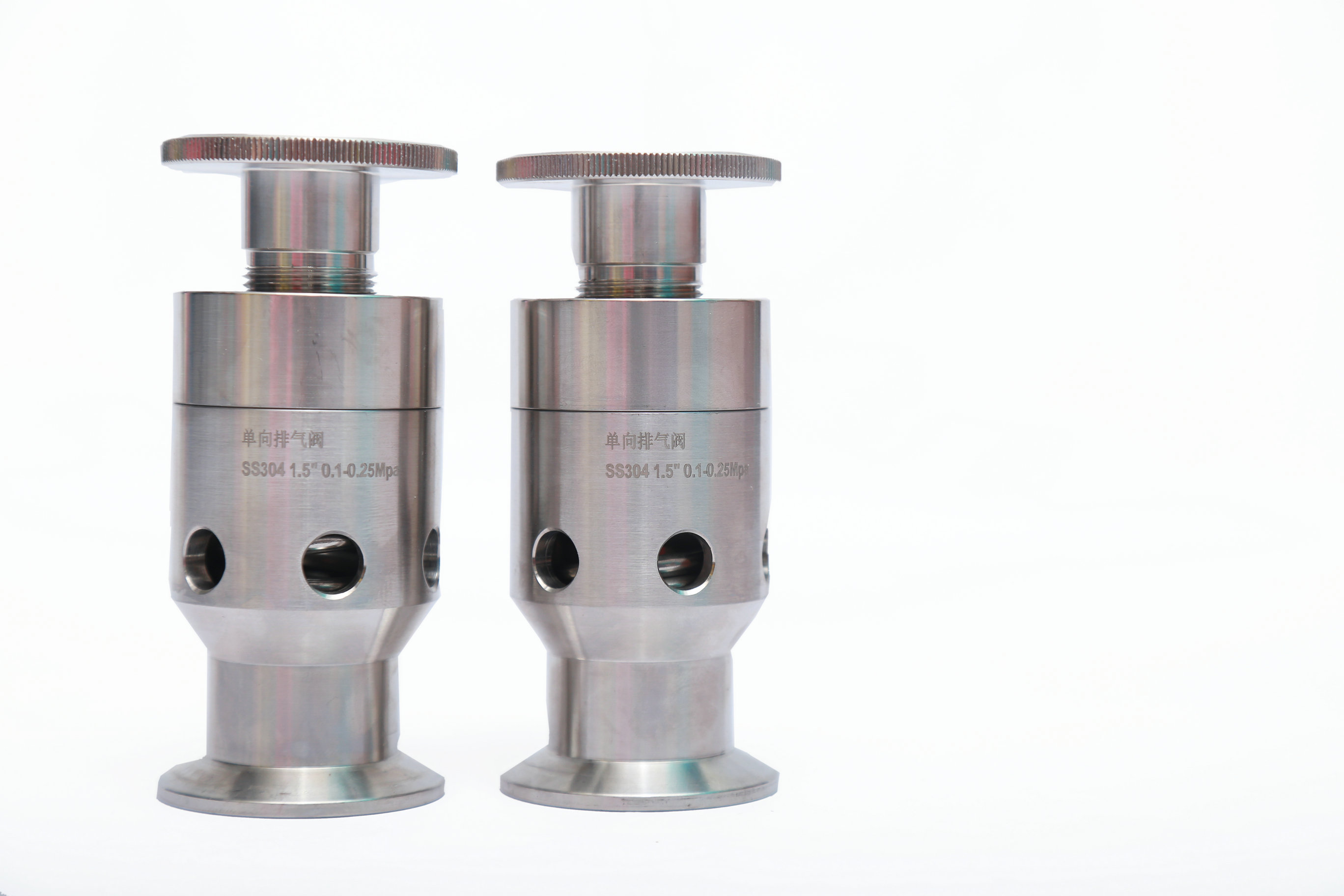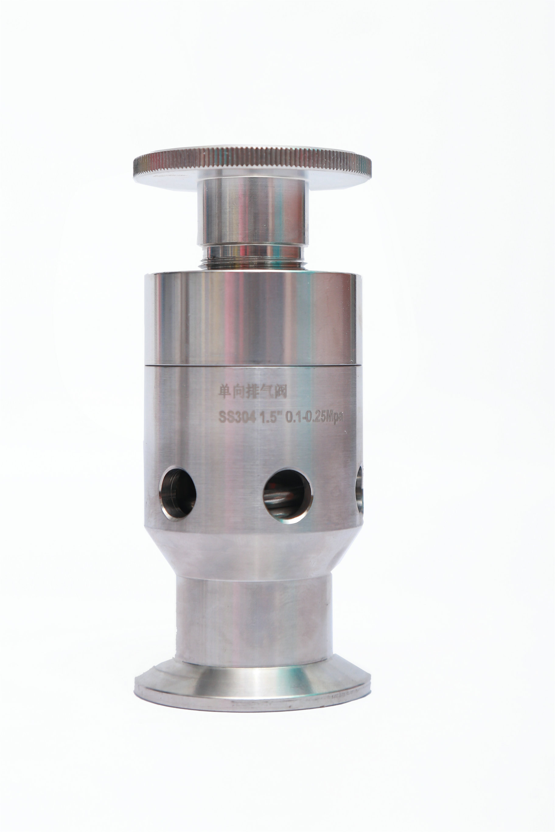 調(diào)節(jié)單向閥,保護容器壓力過高防爆作用,當(dāng)壓力高于設(shè)定壓力(標準2BAR)時可以排氣,反之關(guān)閉,同時也可以滿足于各種生產(chǎn)需求,進行調(diào)節(jié)壓力,該閥門不銹鋼材質(zhì),衛(wèi)生設(shè)計,滿足于各種食品加工,啤酒,飲料以及制藥等各種工業(yè)領(lǐng)域。