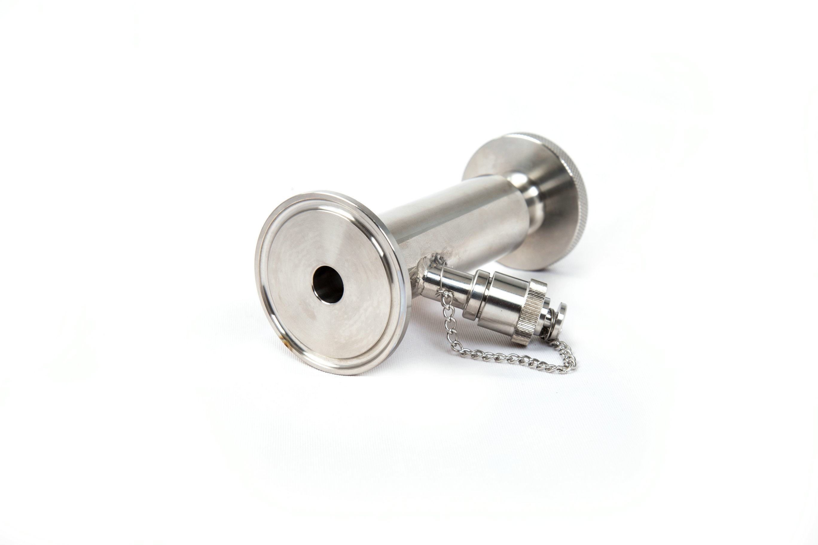 手動取樣閥是用于容器內介質采樣的閥門,抽出介質做檢測里面的成分,緊湊型三夾鉗設計。該閥門采用衛生級設計,材質sus304 密封用于PTFE。三夾鉗鏈接,1.5”TC型號或采用其他型號 需時定制,出水口螺紋鏈接M14*1.5 可以鏈接消泡器,螺紋口堵頭防止菌進入。同時也可以滿足于各種行業生產需求,適用于各種食品加工,啤酒,飲料以及制藥等各種工業領域。